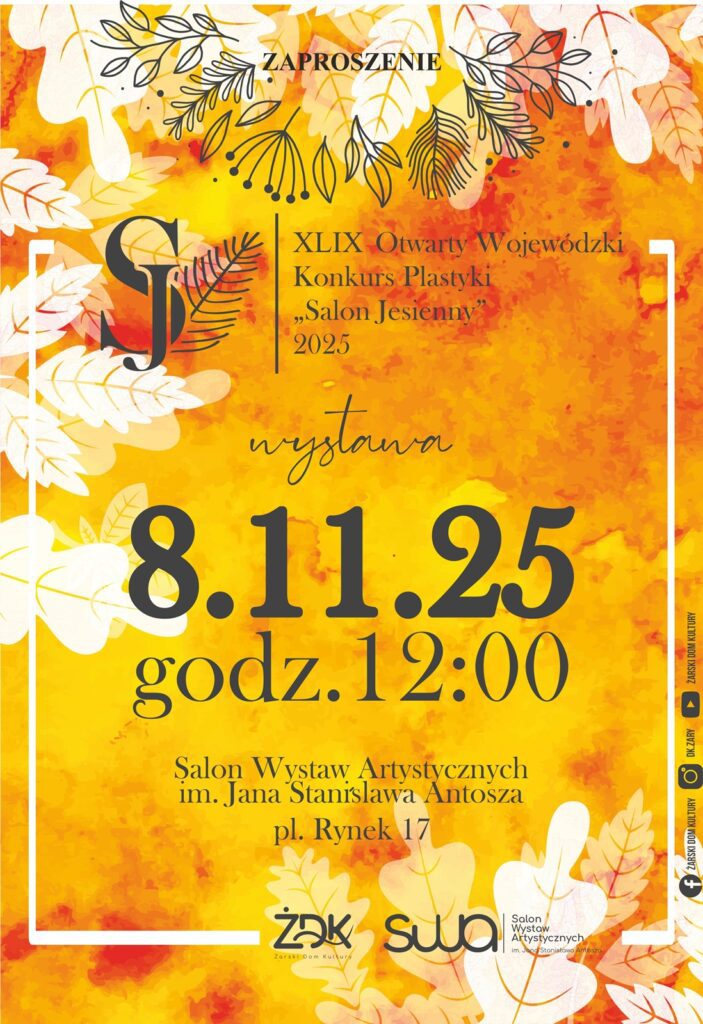 „Salon Jesienny” to wydarzenie z wieloletnią tradycją, które od niemal pół wieku stanowi przegląd najciekawszych zjawisk w sztuce plastycznej regionu. Na wystawie zobaczymy malarstwo, grafikę, rzeźbę i formy eksperymentalne twórców profesjonalnych i amatorów – pełne pasji, emocji i artystycznych poszukiwań.