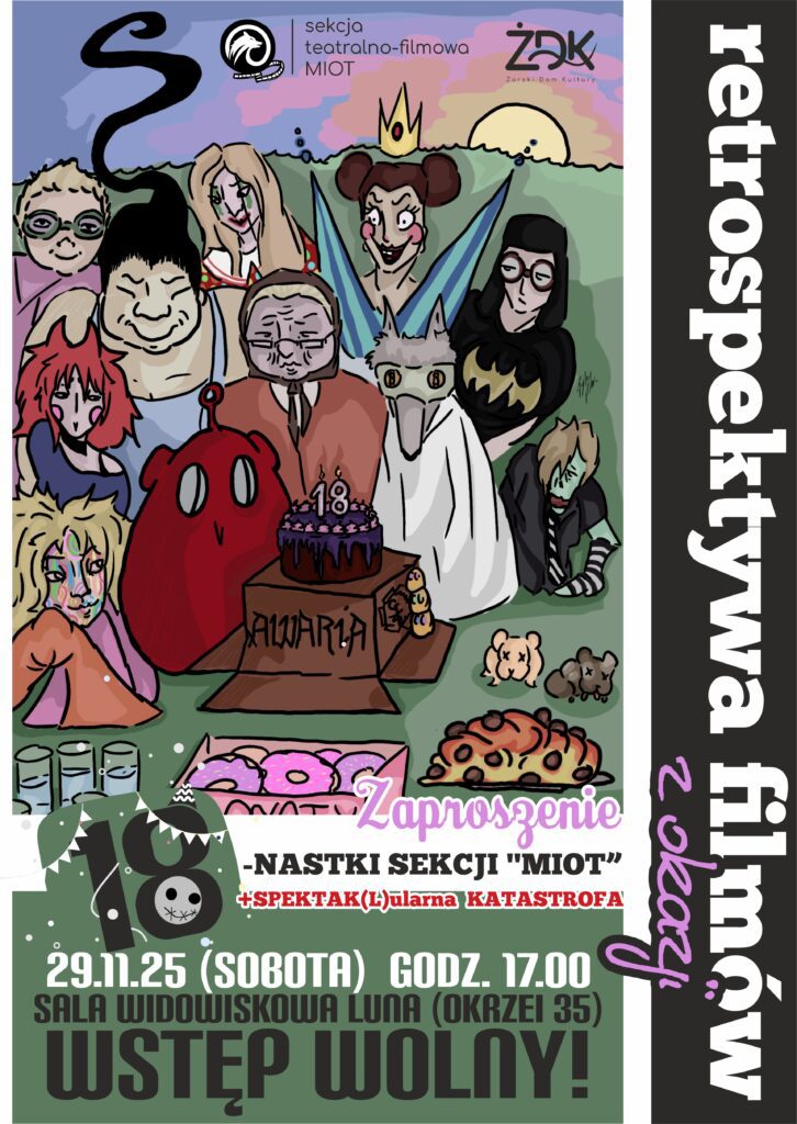 Żarski Dom Kultury ma zaszczyt (a może i lekką tremę) zaprosić Was na RETROspektYWĘ filmów z okazji 18. urodzin Sekcji Teatralno-Filmowej MIOT!