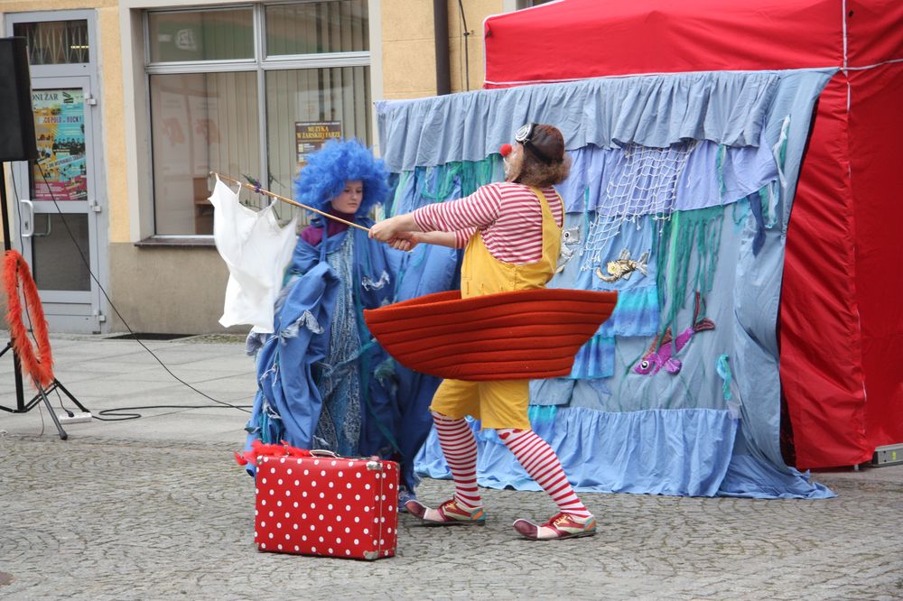 Drugi dzień Międzynarodowych Plenerowych Spotkań ze Sztuką. Dzisiaj przedstawienia rozpoczął Teatr Pinezka z Gdańska, spektaklem pt: „Morskie Opowieści Klauna Pinezki ”