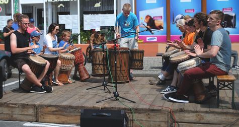 Grupa bebniarska „Rasowe Rytmy” pod kierunkiem Rafała Chrebeli.