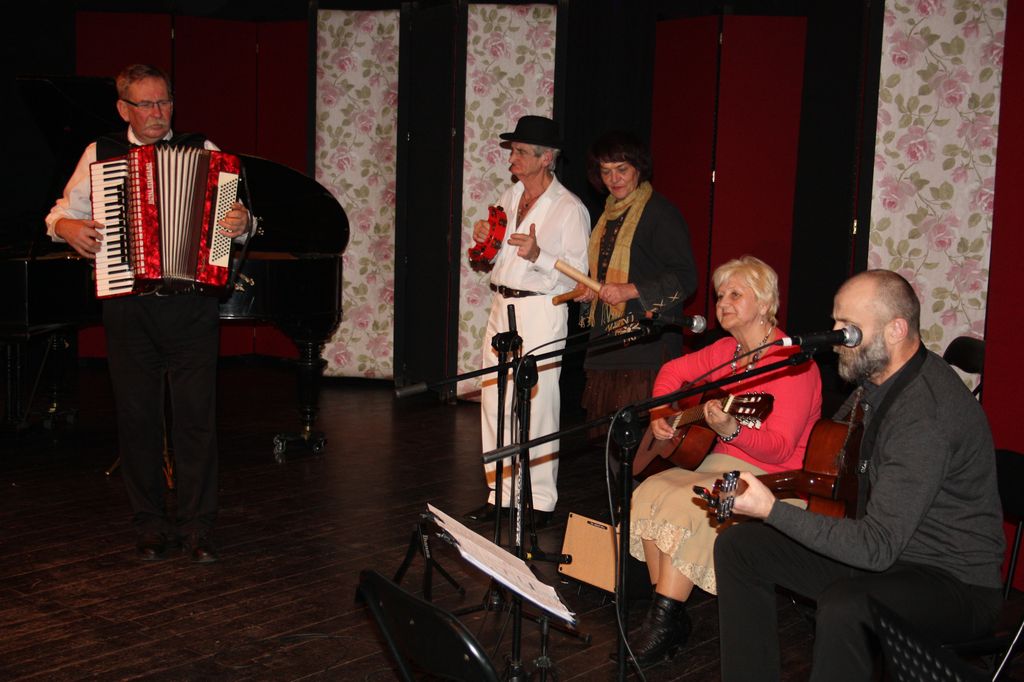 „Piosenka jest dobra na wszystko” – to tytuł kolejnego widowiska muzycznego, które zaproponował mieszkańcom Żar Uniwersytet Trzeciego Wieku. W programie usłyszeliśmy grupę muzyczną „BEMOLE”, zespół wokalny „PARASOLKI”, dwa duety małżeńskie Zofie i Józefa Pużaków, Zofię i Janusza Bizukojciów oraz solistów Piotra Pużaka i Krzysztofa Osowskiego. Karnawałowy repertuar zgromadził w „Lunie” gorącą publiczność, która kupowała piosenki w zamian za życzenia lub dedykację. Integracja międzypokoleniowa stała się faktem. Znakomicie bawili się młodzi i nieco starsi.