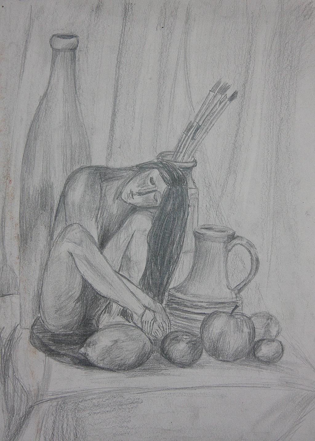 - Aleksandra Ślipko Martwa natura z dzbanem-rysunek