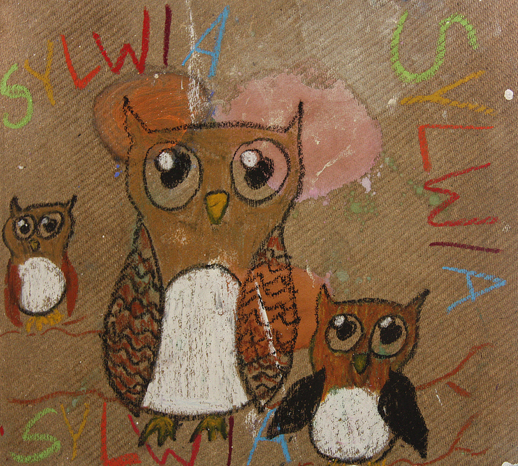 - Sylwia Pieniakowska Sowy-rysunek na płycie