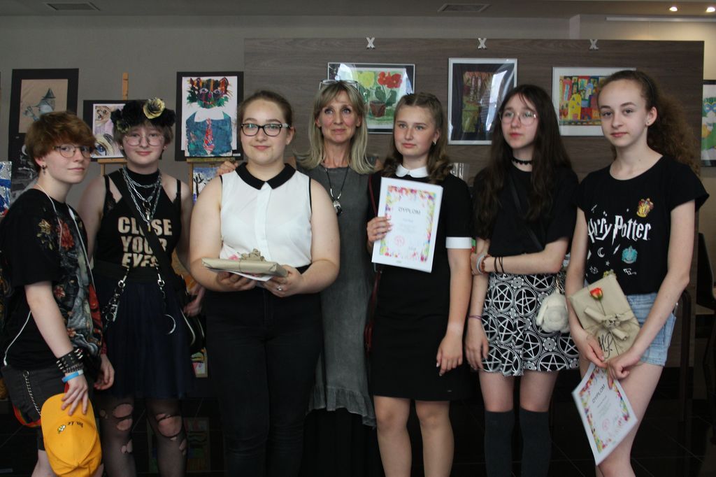 Dziękuję Wszystkim dzieciom i młodzieży, którzy zaszczycili mnie udziałem w zajęciach plastycznych. Z wielka przyjemnością i dumą tworzyłam wystawę, która jest „przepysznym owocem” Waszej całorocznej pracy. Ze szczególnym drżeniem serca dziękuję Hani B., Hani G., Sandrze S., Ewie P., Oli Ś., Oliwii M., Martynie P. i Mai G. za wieloletnią możliwość spotkań w twórczej atmosferze. Życzę Wam radosnej, spełnionej młodości, trafnych wyborów i „pięknych” ludzi wokół. Beata Chudy |
