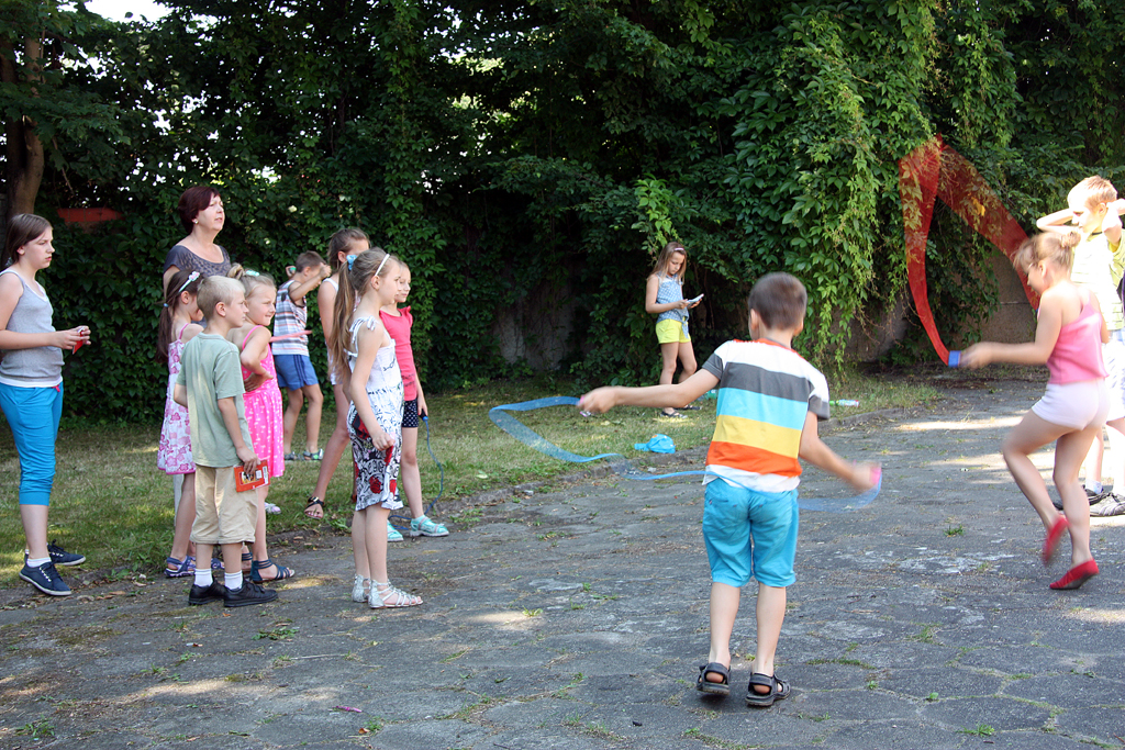 Zajęcia wakacyjne w Żarskim Domu Kultury filia ‘Kunice” odbywają się od 01.07 do 18.07 od poniedziałku do piątku w godz. 10.00-13.00. Dzieci uczestniczą w zajęciach tanecznych, plastycznych, parateatralnych oraz grach i zabawach ruchowych. Dotychczas w zajęciach dziennie uczestniczy kilkanaścioro dzieci w wieku od 6 do 12 lat. Największym powodzeniem cieszą się gry i zabawy z nagrodami. W trakcie zajęć plastycznych uczestnicy mają okazję odkryć swoje zdolności manualne i poznać różne techniki plastyczne . Na scenie powstaje układ choreograficzny, który młodzi tancerze przedstawią na zakończenie zajęć wakacyjnych swoim rodzicom. Zapewniamy bezpieczeństwo, dobrą zabawę i rozwijamy umiejętności współpracy w grupie.